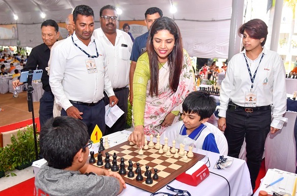 मुलींच्या गटात सहा गुणांसह सात खेळाडूंचे वर्चस्व… ३९२ मुलं व १७७ मुलींचा समावेश असलेल्या या स्पर्धेतील मुलींच्या गटात पहिल्या बुद्धिबळ पटावर दिवी बिजेस आणि जानकी एस डी दोघं केरळ यांच्या अटितटीचा सामना होऊन बरोबरीत झाला. झारखंडची दिशीता डे हिने आरध्या दास त्रिपूरा हिच्यासोबतचा सामना बरोबरीत झाला. महाराष्ट्राची क्रिषा जैन व भूमिका बांधले यांच्यात तिसऱ्या पटावर सामना रंगला त्यात क्रिषा जैनने बाजी मारली. सुमिता पुनगावन तेलंगणा हिने मान्या ड्रोलिया गुजरात हिला नमवून आपले वर्चस्व कायम ठेवले. महाराष्ट्राची प्रिशा घोलप हिने कर्नाटकची नक्षत्रा गोमूदवेली  हिला नमविले. मुलींच्या गटात सहा गुणांसह सात खेळाडू आघाडीवर आहेत.