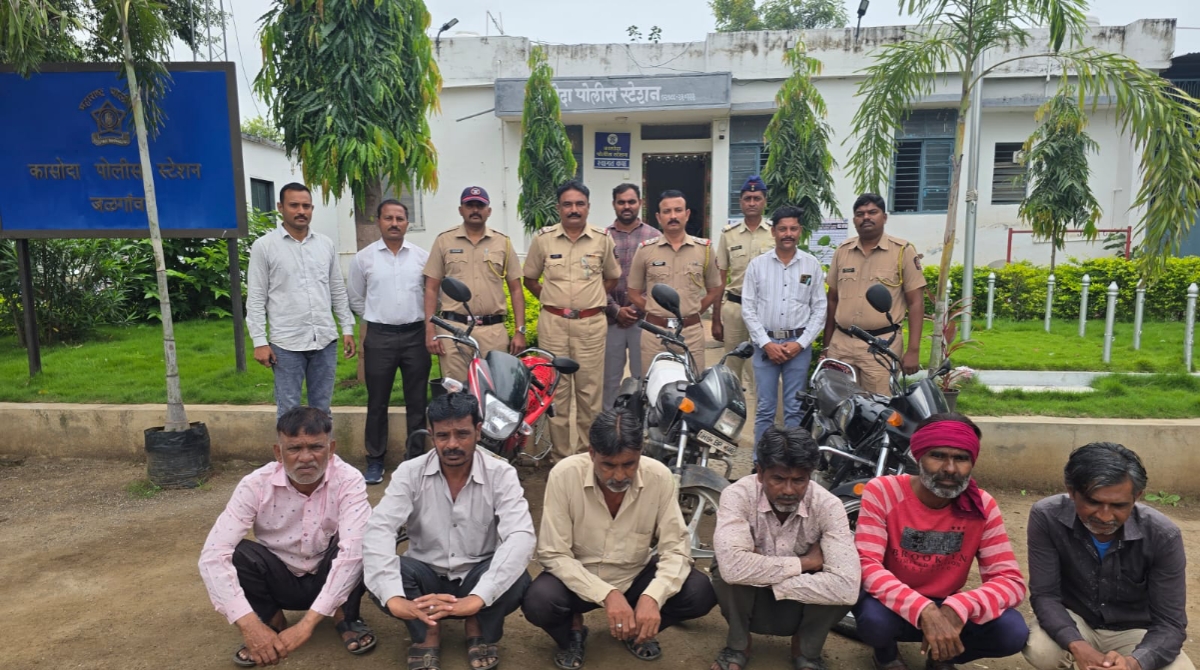 शेख फारुख शेख नबी, शेख शहीद शेख रफिक, शेख निजाम शेख सिराज, तस्लीम सुलेमान खान, शेख हमीद शेख शौकत, शेख हमीद शेख अमीर, शेख मुस्ताक खान अमीर खान (सर्व रा. कासोदा ता. एरंडोल जि. जळगाव) अशी अटक करण्यात आलेल्या सात जुगारींची नावे आहेत. सहाय्यक पोलीस निरीक्षक निलेश राजपूत यांच्या पथकातील पोलीस नाईक अकिल मुजावर, पोकॉ समाधान तोंडे, प्रशांत पगारे, कुणाल देवरे, योगेश पाटील आदींनी या कारवाईत सहभाग घेतला. अटकेतील सर्वांविरुद्ध महाराष्ट्र जुगार प्रतिबंधक कायदा कलम १२ (अ) प्रमाणे गुन्हा दाखल करण्यात आला आहे.