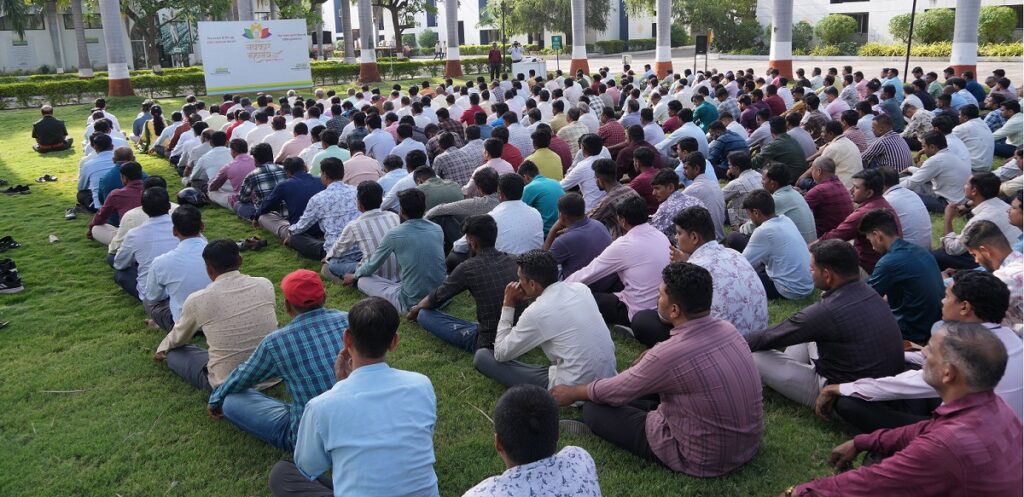 जळगाव, दि. ९ (प्रतिनिधी) : जैन प्लास्टिक पार्क, जैन हायटेक प्लांट फॅक्टरी , जैन अॅग्री पार्क तसेच जैन फूड पार्क येथील जैन इरिगेशनच्या सहकाऱ्यांनी गुरुवारी ‘विश्वनवकार महामंत्र दिन’ सामुहिकपणे मंत्र जपत उत्साहात संपन्न केला. सकाळी नियोजित वेळेत जैन इरिगेशन सिस्टीम्स लिमिटेडच्या विविध प्रकल्प परिसरात सामूहिक नवकार महामंत्र जप करण्यात आला. यामध्ये अधिकाऱ्यांसह सहकाऱ्यांनी मोठ्या संख्येने स्वयंस्फूर्तीने सहभाग नोंदवून भक्तिमय वातावरण निर्माण केले.