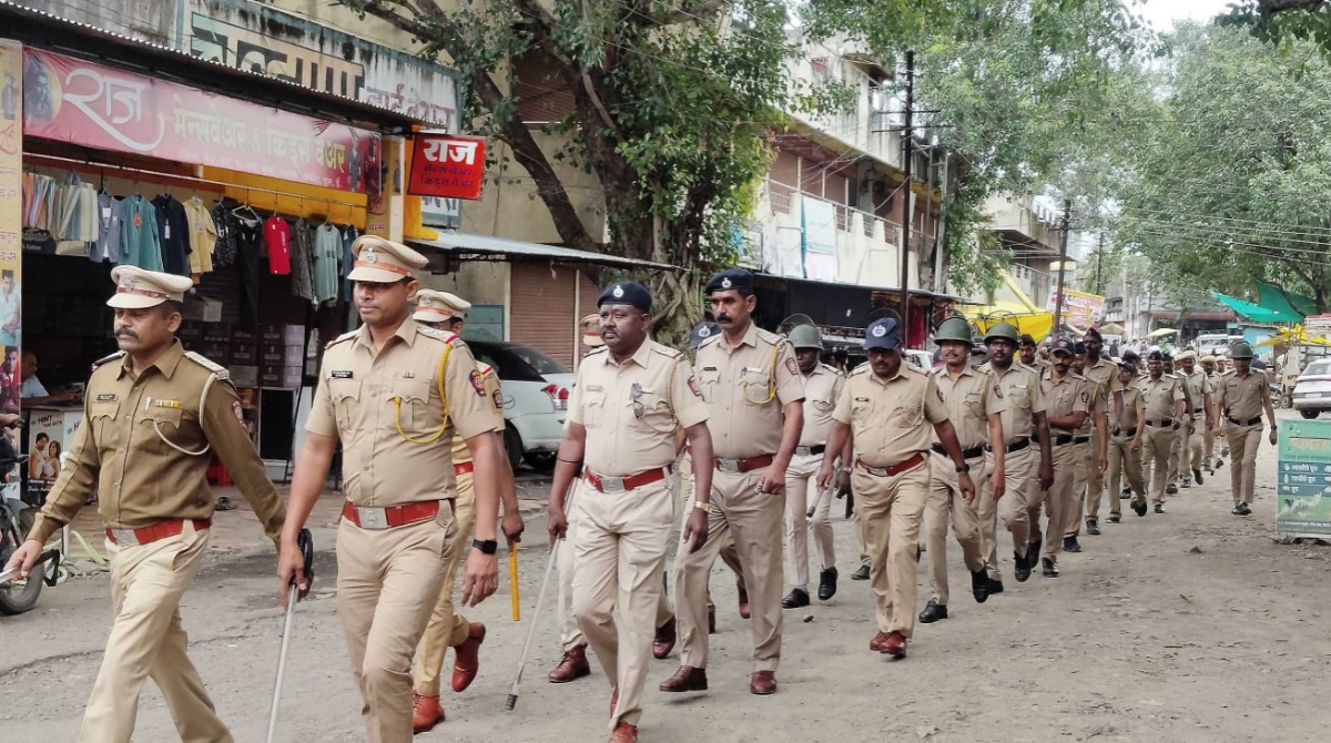 सण उत्सवांच्या पार्श्वभुमीवर घाटंजी पोलीसांचे पथसंचलन
